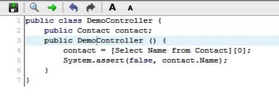 You have created a page which uses DemoController and which are not showing expected value on the page . So you want to debug the value of Name field of Contact object. Below is the code