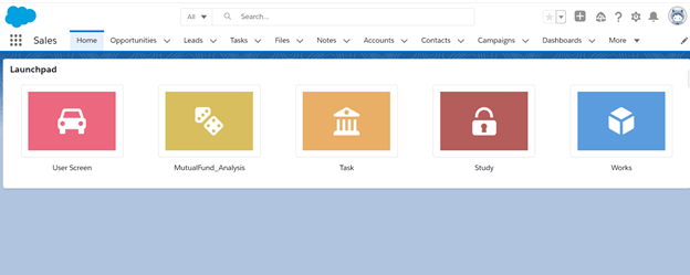 Like App Launcher, Launchpad lets user quickly access the information they need. Using launchpad, you can access visualforce pages, lightning web components, lightning components directly without creating any tab.