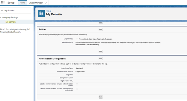 - Click on ‘Edit’ button under ‘Authentication Configuration’ & check off ‘Identity Provider’ org which is just below Login Form.